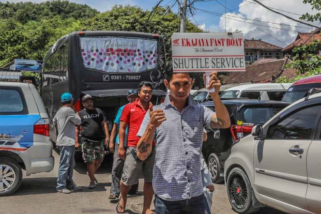 しかしスピードボートの方がずっと楽だと思います。。バリ島の港Padangbaiに着いてからホテルまでシャトルバスで送ってくれますし、その料金はボートのチケット代に含まれています。