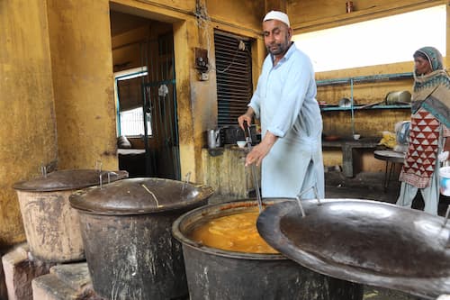 ゴーラ・シャリフ廟では、毎日、無料で食事を提供しています。1日に焼くチャーパティー(インドなどで食べられている無発酵の平たいパン)は800~900枚。木曜・金曜・日曜は肉料理も出るそうです。